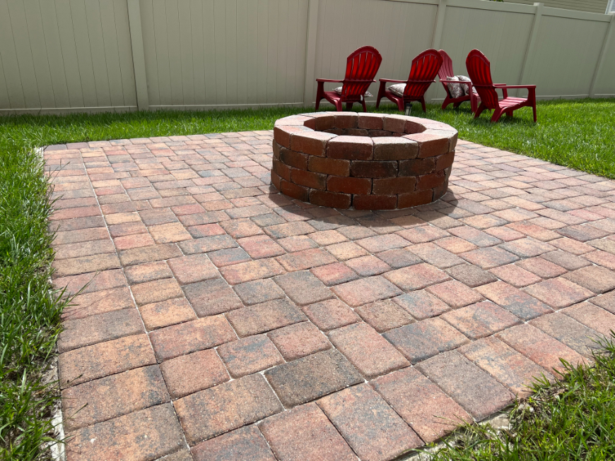 This project included cleaning, sanding and sealing this set of pavers. An acid wash is used to remove efflorescence, then the pavers are pressure washed to prepare the surface to be sanded and sealed. All sand is applied using a hydro compaction method which locks all sand into the joints between the pavers. Last, we put down three coats of color enhancing and joint stabilizing sealer to protect the pavers for a minimum of two years and provide a beautiful paver surface.